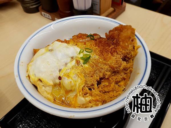 豬排丼有分松竹梅三種等級,竹等級的豬排有120g,以豬排丼來說這個分量很ok啦!